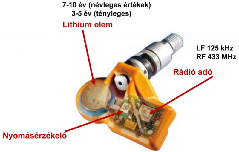 A direkt TPMS rendszer esetén mindig találkozunk egy érzékelő jeladóval:
