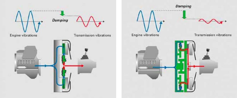 A mai modern motorok nagyon alacsony fordulatszámon működhetnek, a fordulatszám növelésével lökésszerűen érkező nyomatékegyenetlenséget csillapítani kell. Hagyományos esetekben ezt a feladatot a tengelykapcsoló tárcsa csillapító rugói oldották meg. Tekintettel a mai motorokkal szemben támasztott igénybevételeknek a nagy nyomatéknak és az alacsony fordulatszámnak, további beavatkozásra lehet szükség.