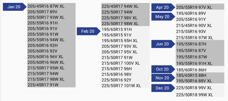 A Goodyear EfficientGrip Performance 2 45-féle méretben kapható.
