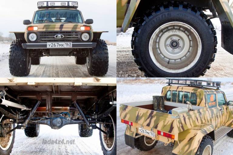 A Lada gyár tulajdonában lévő Vis-Auto készítette el a duplafülkés, alacsony talajnyomású pickupot.