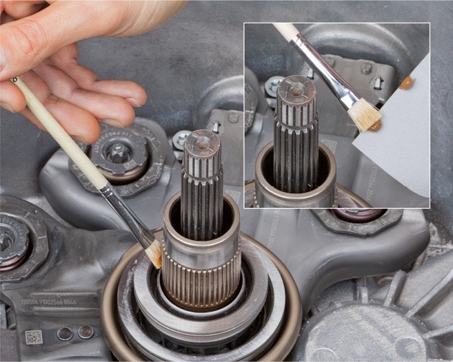 • Kenjék be a sebességváltó bemenőtengelye csapágyülésének teljes kerületét egy csepp hajtóműolajjal.