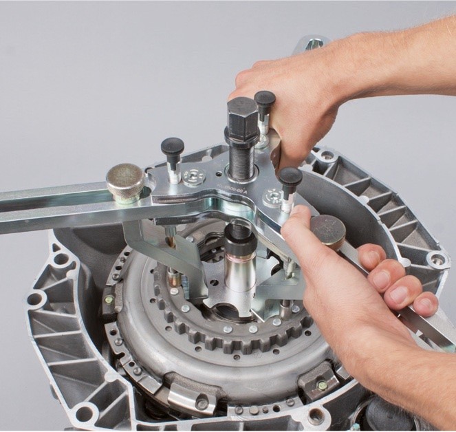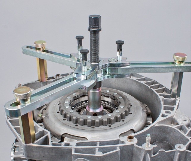 Az új Renault DC4 sebességváltóhoz a duplakuplungokat alapvetően szállításbiztosítással látják el. Ezért a javítás előtt nincs szükség kiegészítő műveletekre. Ha a duplakuplungot a kiszerelés után újra felhasználják, mert pl. a sebességváltó tömítésein kellett munkálatokat elvégezni, akkor a szállításbiztosítást vissza kell állítani. Ehhez a művelethez használják a visszaállító szerszámkészletet (cikksz.: 400 0425 10).