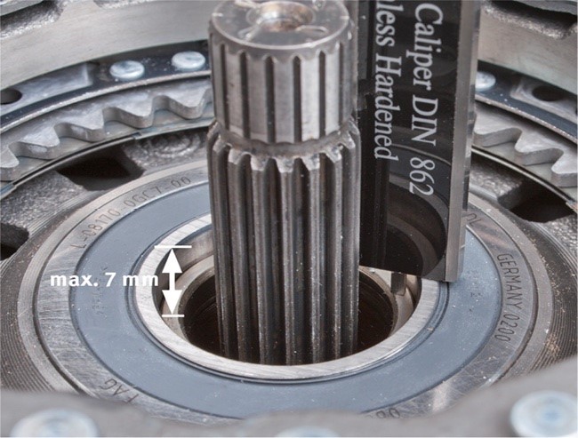 Figyelem! Az üreges tengely csapágyülését meg kell tisztítani és kifogástalan állapotban kell lennie! Egy oxidált vagy sérült csapágyülés esetén az erő a kuplung felsajtolásakor megengedhetetlenül megnövekszik és ezzel az üreges tengely csapágyazását a sebességváltóban károsítja!