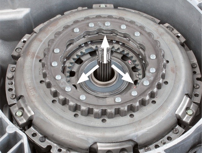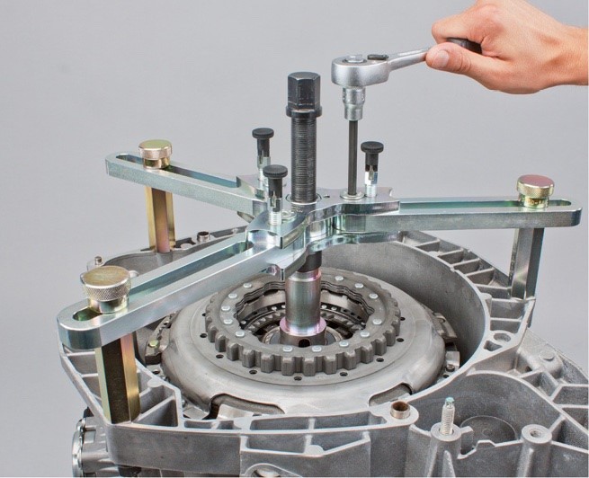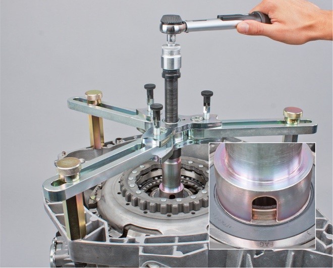 • Mint ahogyan a hagyományos kuplung javításakor, a duplakuplung cseréjekor is le kell ellenőrizni a vezetőcsapágyat és szükség esetén ki kell cserélni.