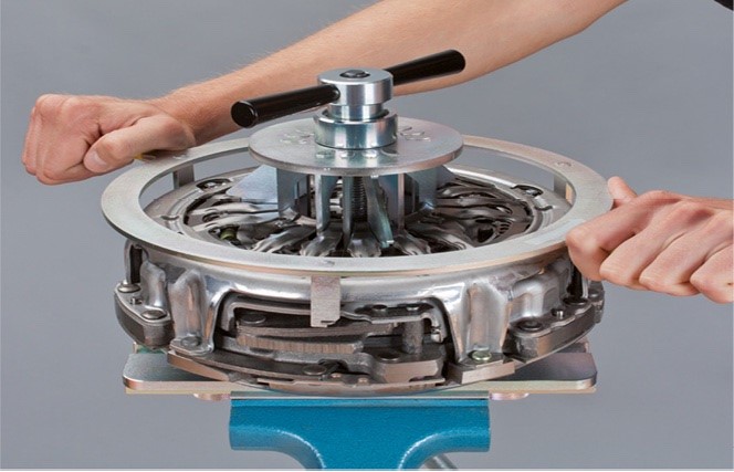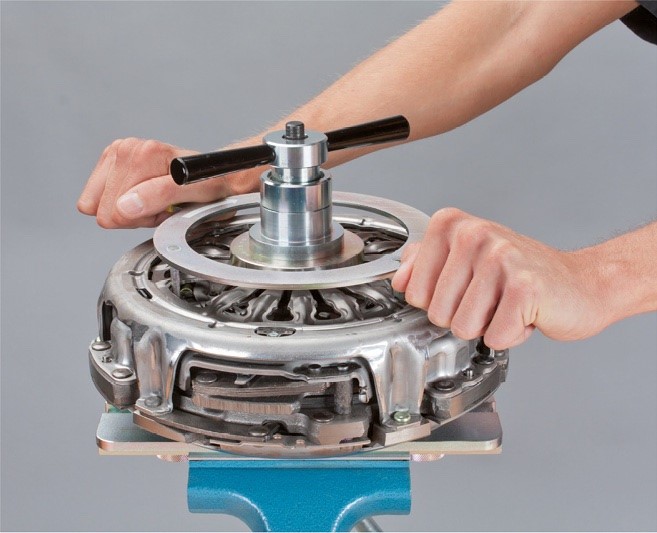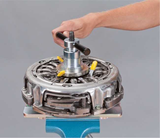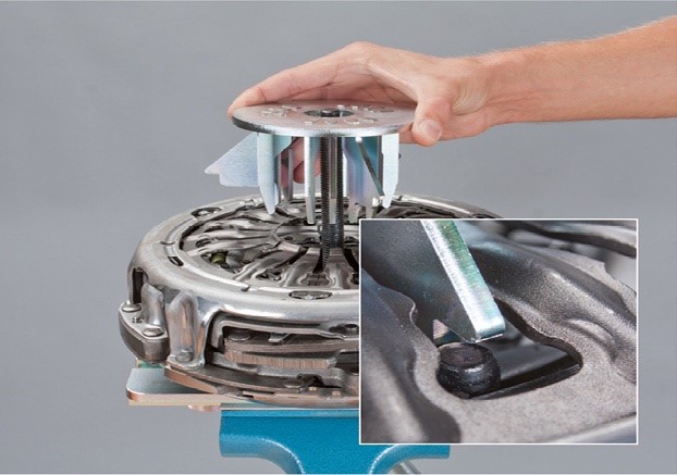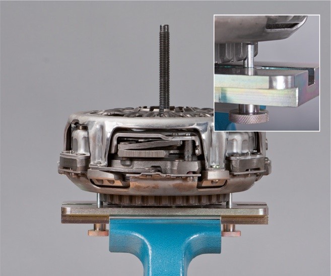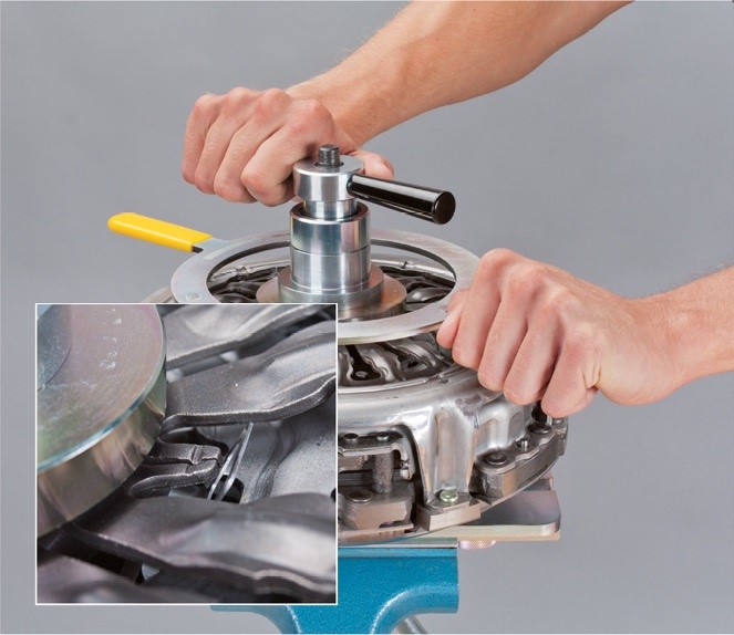 • Készítsék elő a kuplungot a beszerelésre. Ehhez szereljék fel a célszerszámot, hasonlóan a duplakuplung kiszerelésekor.
