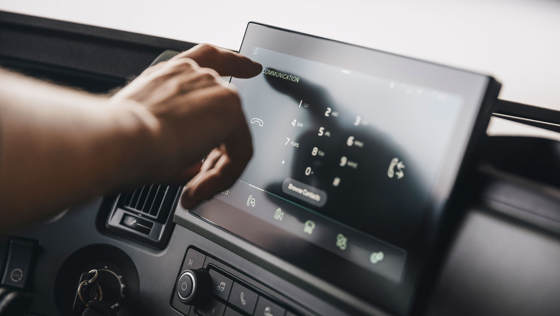 Az új Volvo FM egy opcionális kilenc hüvelyk képátlójú oldalsó kijelzővel rendelkezik a infotainment, a navigáció, a szállítási információk és a kamerák képe számára. A kijelző többféle módon is kezelhető: a kormánykeréken intuitív módon elhelyezett gombokkal, hangvezérléssel vagy közvetlenül az érintőképernyőn és a kijelző vezérlőgombjaival. Mind a műszeregység, mind az oldalsó kijelző számos nyelvet kínál. Ezenkívül a kormánykerék új döntési lehetősége ergonomikusabb vezetési pozíciót biztosít.