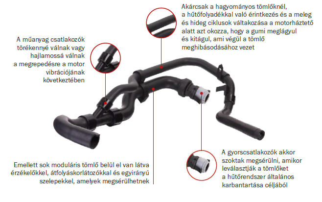 A motorok egyre bonyolultabbá válnak, és így a hűtőfolyadék-tömlőik is. A modern moduláris tömlők elágaznak és hűtőfolyadékot szállítanak számos különböző, a motorháztető alatt található eszköznek, és általában komplett szerelvényként kaphatók felszerelt bilincsekkel és csatlakozókkal.