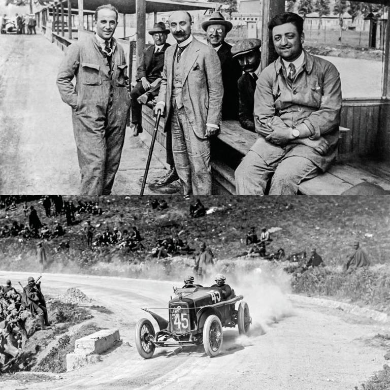 Nicola Romeónak (középen) és Enzo Ferrarinak (jobbra) mindig fontosak voltak a versenysikerek