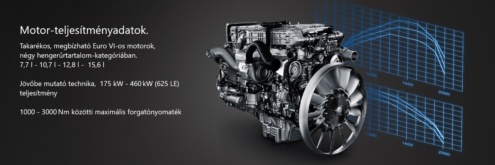 - Takarékos, megbízható Euro VI-os motorok, négy hengerűrtartalom-kategóriában