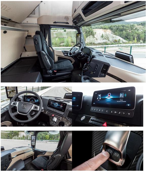 Az új Actros belső tere a legmagasabb igényeket is kielégíti a vezetési-, munka- és lakókényelem terén, mert a vezetőfülkék kialakításánál a gépkocsivezető áll a középpontban. A barátságos környezetet és kellemes térérzetet teremtő színválasztéktól kezdve az új belső világítási koncepcióig minden arra szolgál, hogy megkönnyítse a munkát, és a pihenőidőket a lehető legkellemesebbé tegye.