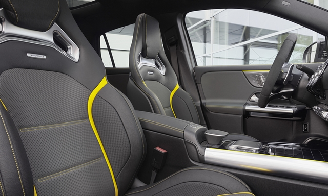 A Mercedes-AMG GLA 45 S 4Matic+ sportos lökhárítókat, 19 colos kerekeket, méretes hátsó szárnyat és sportkipufogót kapott. A motorháztető alatt a világ legerősebb sorozatgyártású 4 hengeres turbómotorja rejtőzik, mely 2 literes lökettérfogatból 421 lóerős teljesítményt, illetve kereken 500 Nm-es nyomatékot állít elő.