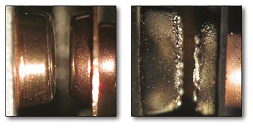 Az erőhatás az érintkezők közötti ívet kihúzza ebből a térből, útját megnöveli és kioltja. Példaként a Prius Hybrid Battery Main Relay szolgáljon. A fénykép egy oktatási célból felnyitott kontaktort mutat. Az állandó mágnes sajnos még így is rejtve marad.
