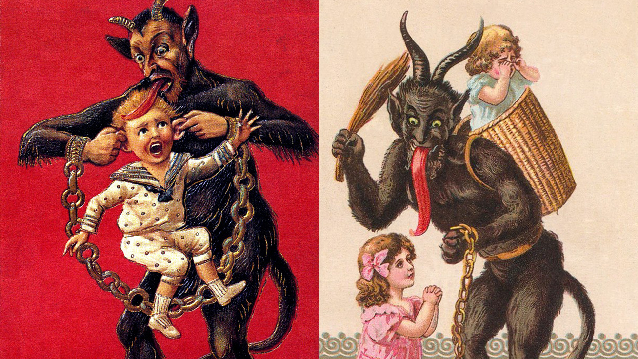 A krampusz alakját minden valószínűséggel a pogány kori hiedelemvilág ihlette, a mindenkori rosszat, a jelen levő démont testesítette meg. A keresztény világban ez az ördögi lény kecskeszarvakat visel, a szőre általában fekete, láncait maga után húzza, a hátán pedig egy hatalmas zsákot cipel, hogy abban vigye el a rossz gyerekeket az alvilágba.