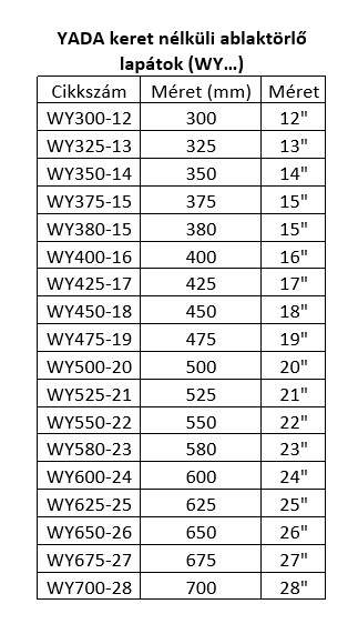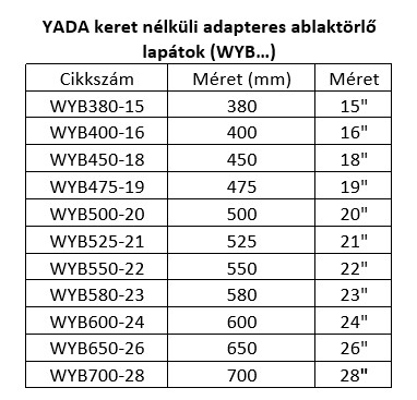 - A YADA ablaktörlők csak és kizárólag darabonként vannak dobozolva!