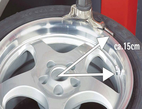 - A gumiabroncs leszerelésekor a rögzítőfejet kb. 15 cm-rel a szelep előtt (2. ábra) kell pozícionálni.