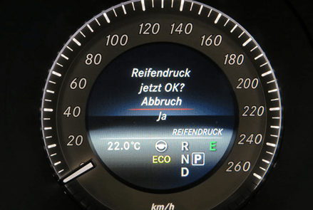 Egy példa céljából a következő információkat szemléltetjük egy Mercedes-Benz W 212 E350 segítségével, amely direkt TPMS rendszert tartalmaz. Ez a jármű mind a négy keréken érzékelőket tartalmaz, amelyek továbbítják a gumiabroncs nyomását a vezérlőegység felé. Az abroncsnyomás-ellenőrző rendszer a keréksebesség-érzékelők adatainak felhasználásával figyeli az abroncsnyomást. Ha az egyik gumiabroncson nyomásesést észlelnek, a vezetőket vizuálisan figyelmezteti a multifunkciós kijelzőn megjelenő értesítés, amely a műszerfalon jelzi a „gumiabroncsnyomás-veszteséget”.