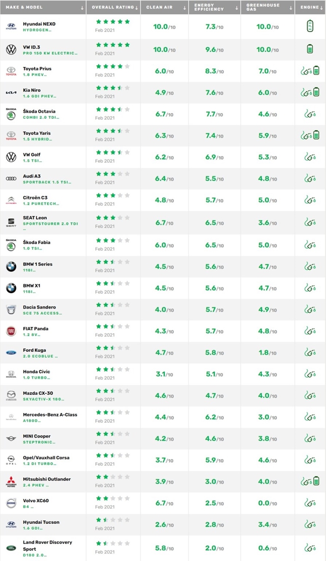 Green NCAP: Ez a lista mutatja, a legújabb autók mennyire környezetszennyezőek