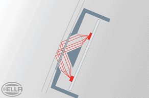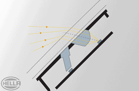 Az érzékelő helyzetének és a száraz szélvédő felületének kombinációja lehetővé teszi a fénysugár maximális visszaverődését (4. ábra).