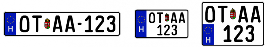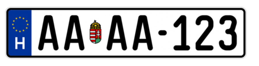 A három betűből, illetve három számból, egy magyar zászlóból és egy nagy H betűből álló kombinációt még 1990 nyarán vezették be Magyarországon, ez kapott 2004-ben, az uniós csatlakozáskor kék alapszínt, a hazai trikolór helyét pedig a sárga EU-csillagok vették át.