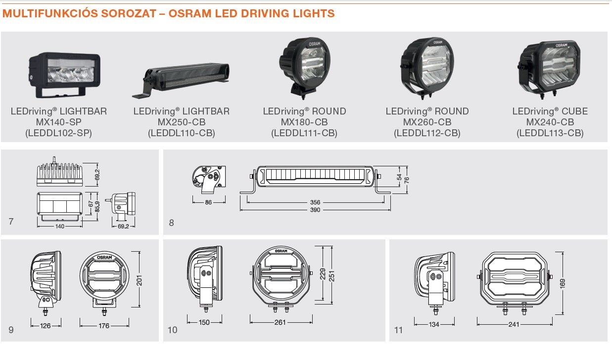 Az OSRAM LEDriving® távolsági fényszórók alkalmasak az út és környékének intenzív megvilágítására. A sokféle kialakításnak, formának és világítási profilnak köszönhetően az intenzív, fehér LED-ekkel felszerelt OSRAM LEDriving® fényszóró nagyszerűen használható erőteljes közeli és távoli megvilágításra munka közben vagy szabadidőben, a sötét országutakon és erdei ösvényeken, közúton és terepen.