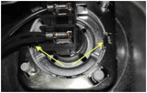 – Helyesen helyezze el a fényszóró burkolatának kupakját és rögzítse a reteszelő bilincset.