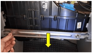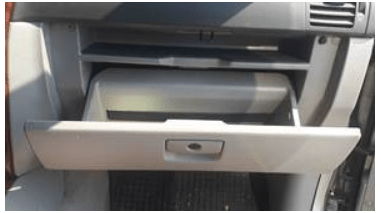 • Szedje szét a kesztyűtartót. Ehhez nyissa ki a kesztyűtartót (1. ábra) és először oldja ki a zárat. Ezután húzza felfelé a kesztyűtartót (2. ábra)