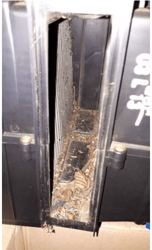 A szűrőház gyakran erősen szennyeződik (5. ábra), ami szagok kialakulásához vezet. Az új szűrő felszerelése előtt alaposan tisztítsa meg a párologtató házát és szükség esetén a felületét.
