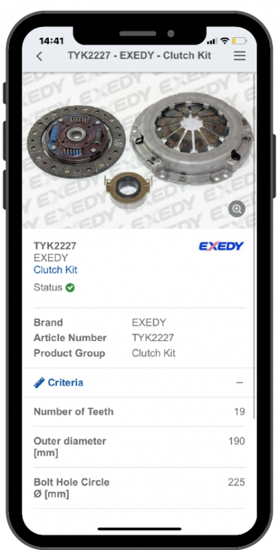 Az alkalmazásban közvetlenül tud keresni Exedy cikkszámra, OE számra vagy akár az autó adatai alapján is.