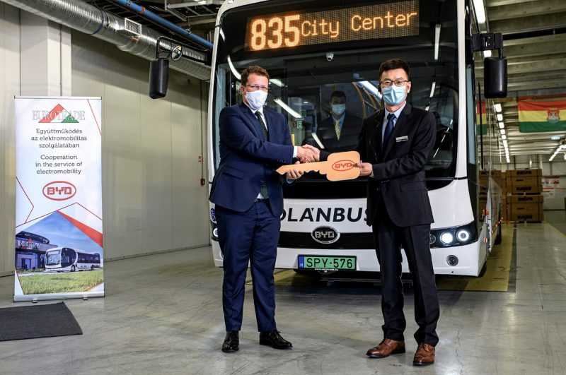 A BYD K9UB típusú, városi, kétajtós, alacsony belépésű, szóló (nem csuklós), elektromos meghajtású autóbusz beszerzéséről szóló szerződést tavaly novemberben írták alá a Volánbusz Zrt., az Eurotrade Kft. és BYD Europe B.V. képviselői.
