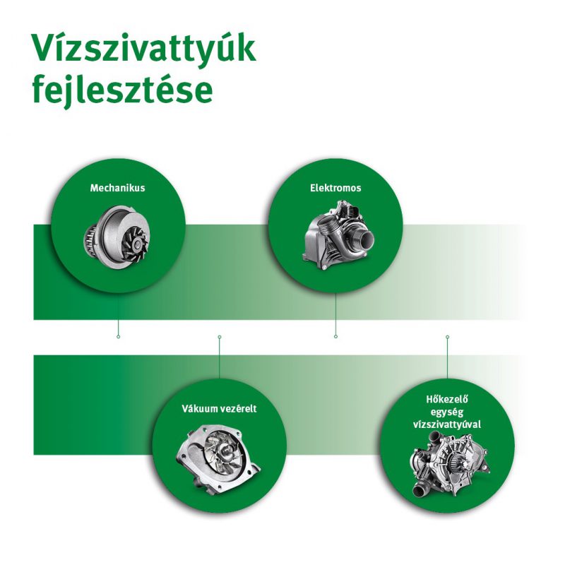 De napjainkban ahogy az autók fejlődnek, már nem egyszerű vízpumpáról beszélünk, hanem Thermo managment rendszerekről. Talán a Hő menedzsment egység a legjobb magyar megfelelő erre hisz, akár 4 hűtőkört is kezelhet egy ilyen egység és itt már nem egyszerű mechanikus megoldásokról van szó.