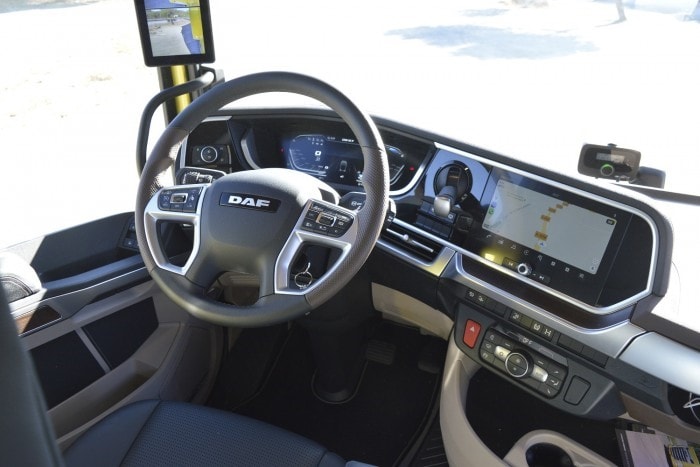 A DAF sohasem készített batár, terpeszkedő és kapcsolókkal teletűzdelt műszerfalakat és ezen a téren lényegében maradtak a hagyományoknál. A 12 colos fedélzeti komputer kijelzője az alapfelszereltség része. A járművezető a középső kijelzőn két elrendezés, valamint négy információszint közül választhat.