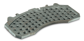 (képeken a fékbetét hordozó lapok, öntvény, hordozó lap csapokkal, és alul weldmesh hordozó lap)