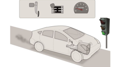 Ha a jármű megáll, pl. közlekedési lámpánál vagy forgalmi dugóban a belsőégésű motor leáll. A motor automatikusan elindul, ha megnyomja a tengelykapcsolót és az első sebességfokozatba kapcsol. Ez azt jelenti, hogy készen áll az azonnali újraindításra.