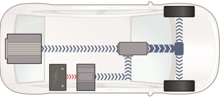 ezzel szemben egy további (kis) villanymotor és egy erősebb akkumulátor is van. Az elektromos segédhajtást csak indításkor segítik és előzéskor nagyobb teljesítményt nyújtanak, ezt a fogalmat „boosting” nevezik.