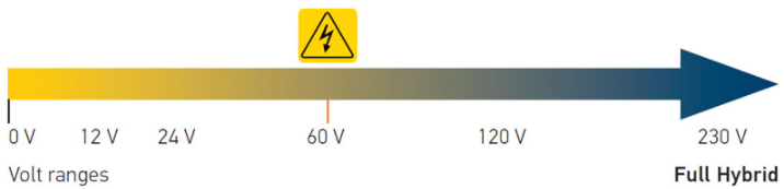 Azok a követelmények és teljesítményszintek, amelyeknek az elektromos/hibrid járművek elektromos meghajtásának meg kell felelniük, nem érhetők el 12 vagy 24 voltos feszültségtartományban. Itt sokkal magasabb feszültségtartományokra van szükség.