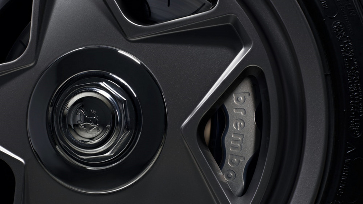 Elöl hatdugattyús, hátul négydugós Brembo fékek vannak alatta, ezért cserélték le a 16 colos felniket elöl 17, hátul pedig 18-asokra, de az ötágú központi anyás felnik rajzolata nem változott. A futómű mögötte viszont nagyon komoly cucc, kifejezetten ehhez az autóhoz, illetve a restomod projekthez fejlesztették az Öhlins-szel közösen. Hat irányban állítható és nagyrészt a korszak F1-es autóinak technikája adta az ihletet, elektronikus állítási lehetőséget kínál és emelő funkciót, hogy ne karcolja a Testarossa orra a fekvőrendőrt.