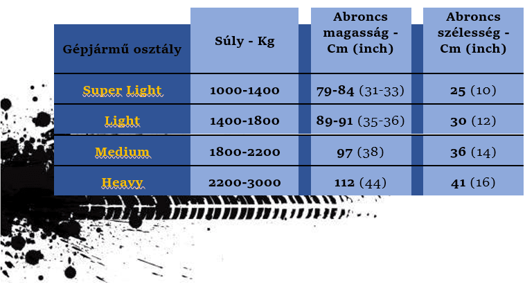 Ajánlott Off-road abroncs és kerék méretek