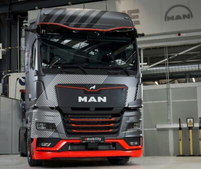 Az MAN nemrég közzé tette az első fotókat a tisztán elektromos nyerges vontatóról, egészen pontosan az e-TGX-ről. A jármű hajtásláncáról azonban egyelőre nem árultak el részleteket. A vállalatnak egyébként van már sorozatgyártásban készülő elektromos “nagy haszonjárműve”, a Lion’s City E, amely 12 méter hosszú, városi közlekedésre szánt szóló busz. Ez hat darab akkumulátorcsomaggal 350 kilométert tud megtenni egy feltöltéssel. Valószínűleg az e-TGX megépítéséhez több komponenst felhasználtak a Lion’s City E hajtásláncából, így például az akkumulátorokat, vagy 240 kW maximális teljesítménnyel rendelkező elektromotort.