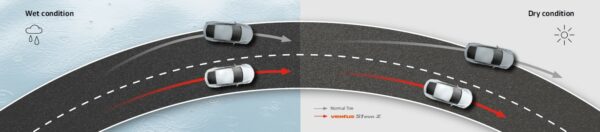 A széles vállblokkok és a külső oldalon elhelyezett keskeny hosszanti csatorna javítják a száraz tapadást. Cél a maximális száraz tapadás elérése, a szükséges aquaplaning ellenállás megtartásával. A csatorna optimális szélessége és elhelyezkedése egyensúlyt teremt a száraz és vizes úton nyújtott teljesítmény között.