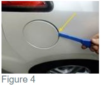 • Óvatosan nyissa ki az ajtót egy műanyag ékkel (4. ábra).