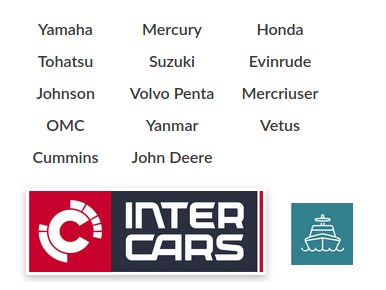 BARR MARINE, FELPRO MARINE, IMNASA, PARSUN, QUICKSILVER, RECMAR, RIVIERA, SEASTAR, SEAI MARINE, SIERRA, VOLVO PENTA, YANMAR