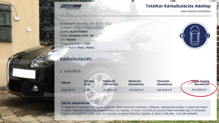 Az alvázszám birtokában már egy lépéssel tovább is juthatunk. Vannak olyan szolgáltatások, mint mondjuk a TotálKár is, amelyek megmondják, volt-e törve egy autó. Ha nincs semmilyen találat az alvázszámra, fizetni sem kell érte, ha viszont van kártörténeti bejegyzés, a dokumentumot pár ezresért megkapjuk. Ebben a jelentésben képek nem szerepelnek, de a kalkulációkból lehet következtetni a sérülés mértékére. Egy 1-2 millió forintos autón sem biztos, hogy nagy tétel egy százezres javítás, simán lehet egy cserélt és újrafényezett lökhárító ára ez. Egyszóval: a korábban javított autótól nem kell megijedni, a hazai járműpark nagy részét érte már kisebb-nagyobb káresemény, lehet, hogy csak parkolási sérüléseket tüntettek el. De kifoghatunk a lekérdezéssel olyat is, ami teljesen ropira volt törve. A javítási árakon hülyedezés helyett érdemes ezeket támpontként használni, hogy az autó melyik részén érdemes szakszerűtlen javítás nyomait keresni.