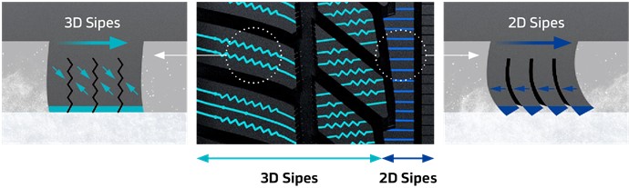 A mintázati merevséget a 2 dimenziós, és 3 dimenziós lamellák vegyes elrendezésével optimalizálták. A 2D lamellák a futófelület közepén, a 3D lamellák ezeket körbevéve helyezkednek el. Ezáltal a Winter i*cept iON kiváló kezelhetőséget nyújt minden téli útfelületen.