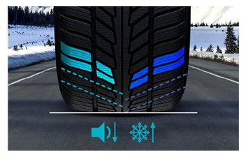 A Winter i*cept iON V-alakú mintázata a keletkező útzajt szétszórja a váltakozva földet érő külső és belső futófelületi blokkoknak köszönhetően, ez egyben javítja a tapadást is havas útfelületen.