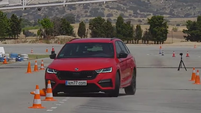 A km77.com rendszeres jávorszarvas-teszt videói már-már az autós élet mindennapi jelenségeivé váltak, a legújabb epizódban egy Skoda Octavia Combi RS próbál a lehető leggyorsabban átszáguldani a bóják közt. A sportos puttonyos sajnos alulmúlta az elvárásokat, a bóják érintése nélkül egyszer sem sikerült 70 km/h felett átjutnia a kanyarokon, még az opcionális adaptív futómű és a Bridgestone Turanza gumik ellenére sem. Fontos megjegyezni, hogy ebben a formában jelenleg nem kapható nálunk az RS, a tesztelt autó ugyanis a GTE Golf közeli rokona, a 245 lóerős, elsőkerék-hajtásos, konnektoros hibrid változat, amiből nálunk már elfogyott a kvóta.