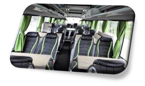 A Setra S 515 HDH belső megjelenése is pazar: az üléseket grafitszürke-zöld színű kárpittal, illetve fekete, bőrborítású fejtámlákkal látták el. A függönyök zöld színűek, míg a padló ugyancsak grafitszürke szőnyegezést kapott. Az ülések felett – a távolsági buszoknál megszokott módon – egyénileg szabályozható levegőbefúvás, illetve olvasólámpák állnak rendelkezésre. Az autóbuszt tehát minden olyan kényelmi funkcióval ellátták, amire egy utas manapság csak vágyhat. Így aztán a kollégákkal töltött közös idő élmény és kikapcsolódás is lehet egyben.