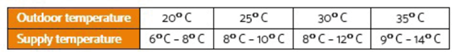 Egy megfelelően működő rendszernél a hőmérsékleti értéknek nagyjából meg kell egyeznie az alábbi táblázatban szereplő értékekkel: