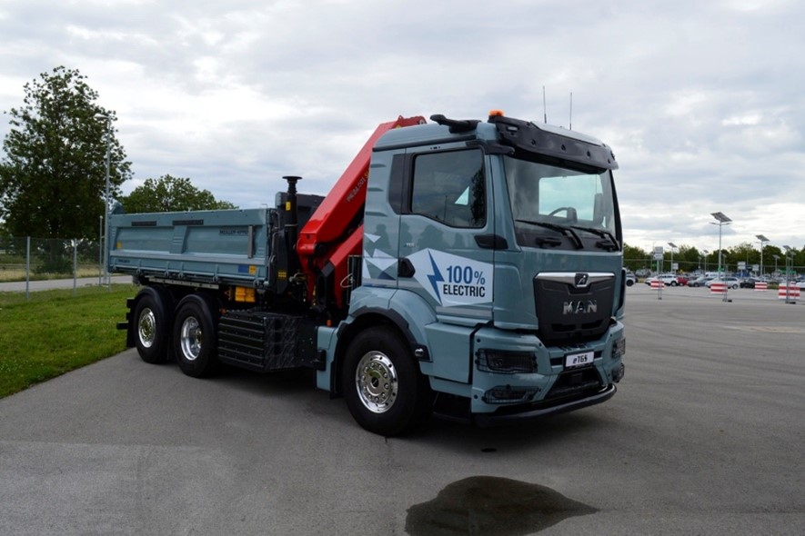 Az elektromos változatoknál a hűtőmaszk felső részén futó krómozott csíkban jelenik meg az MAN totemállata, az oroszlán. A fényszórók között, a hűtőmaszk alján három széles lamella kapott krómborítást, ami tovább hangsúlyozza ezen teherautók nívós megjelenését. Az aszimmetrikus formájú fényszórók alsó részén egy-egy LED-csík fut végig, amelyek lekövetik a lámpák enyhén hullámos, alsó íveit. Ez a megoldás adja az MAN teherautót „tekintetét”, ettől azt érezhetjük, hogy egy a szavannán hűsölő oroszlán üreges tekintetével nézünk farkasszemet.