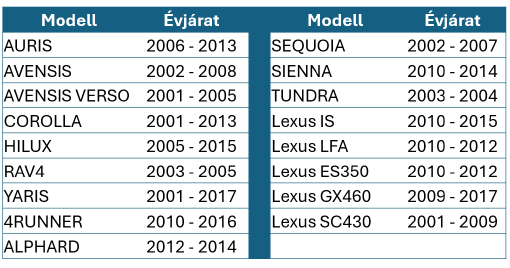 A visszahívásban érintett Toyota modellek Európában (a teljesség igénye nélkül):