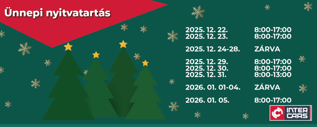 2025.12.22. 20:00-tól  2025.12.27. 12:00-ig leadott rendelések -> 2025.12.29-én reggelre kerülnek leszállításra a képviseletekre